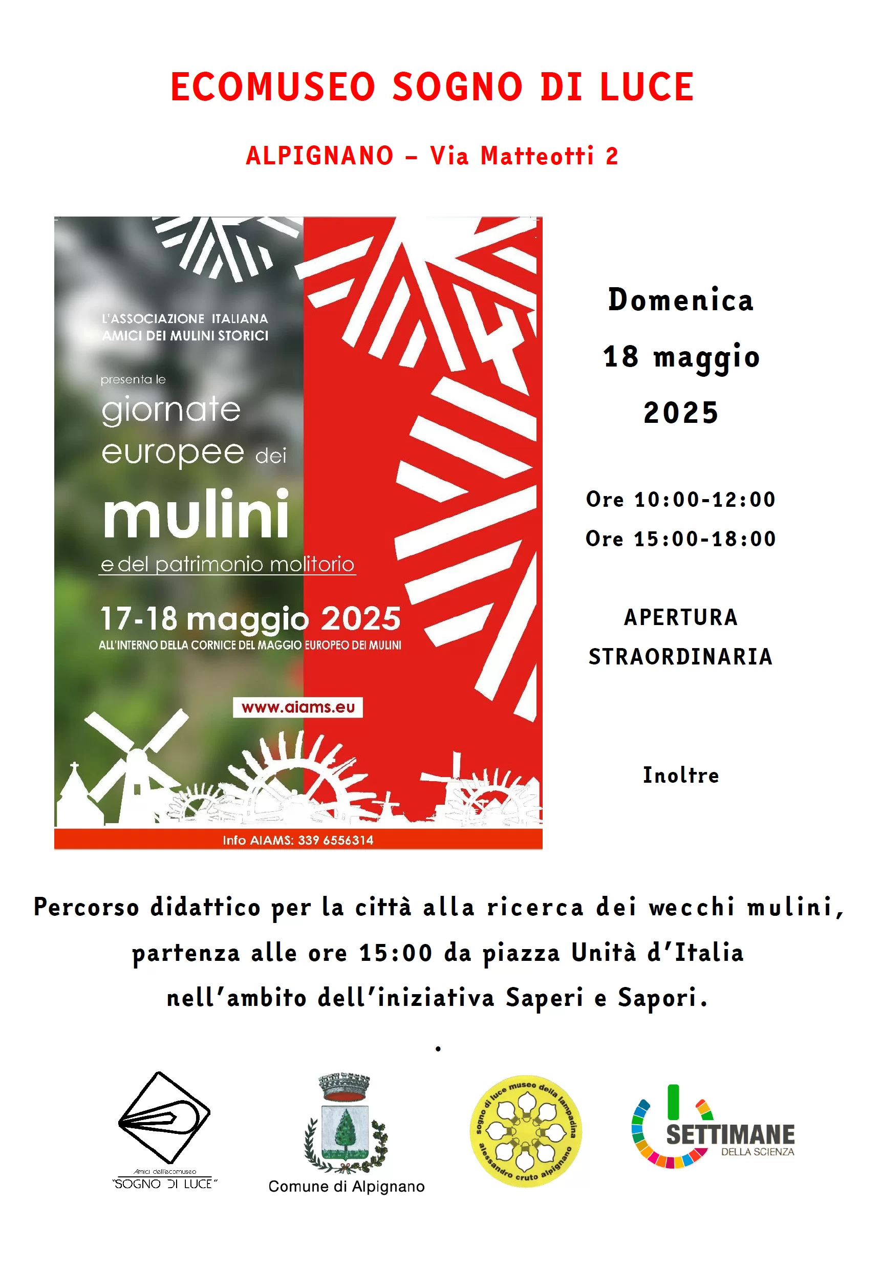 Domenica 18 maggio 2025 L’Associazione Italiana Amici dei Mulini Storici organizza quest’anno la quattordicesima edizione dell’evento sul territorio […]